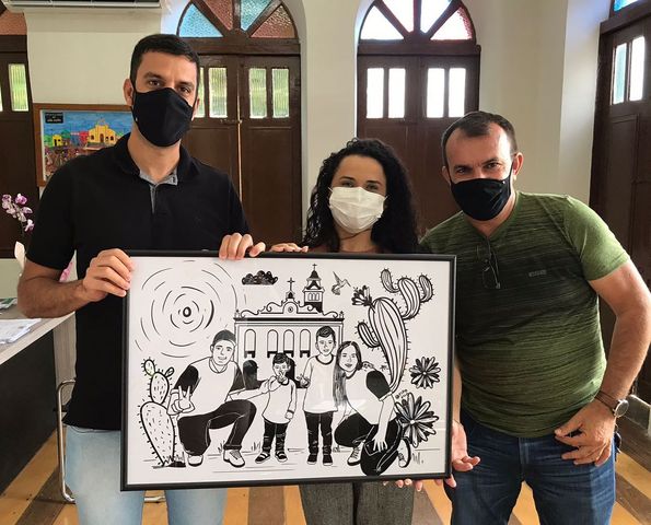 “Hoje estive na prefeitura de Bezerros visitando a amiga prefeita lucielle laurentino , ao chegar lá fui surpreendido com um presente. Um quadro em xilogravura com o desenho da minha família, confeccionado pela artista Bezerrense @tipoxilo. Obrigado prefeita pelo lindo presente que guardaremos com muito carinho. Agradeço ainda a recepção acolhedora da vice-prefeita Socorro”.